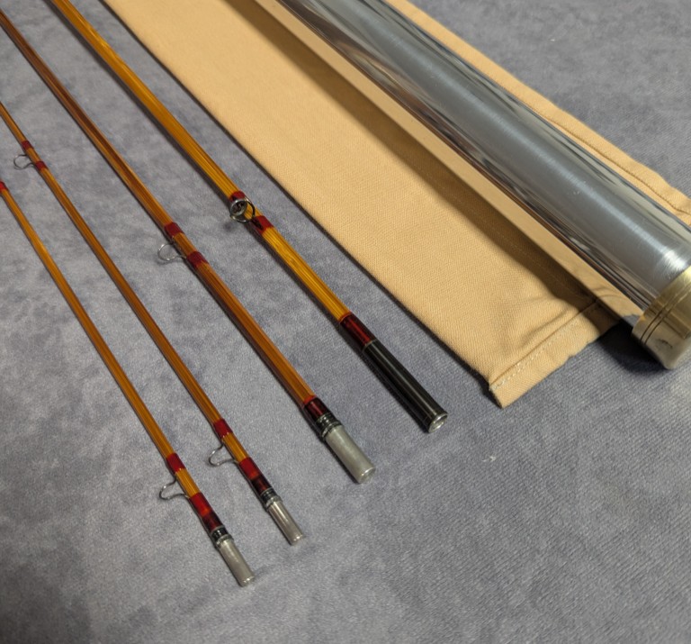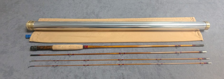 reel seat. Rod comes packed in khaki cloth rod bag and stored in aluminum stamped brass capped rod tube.