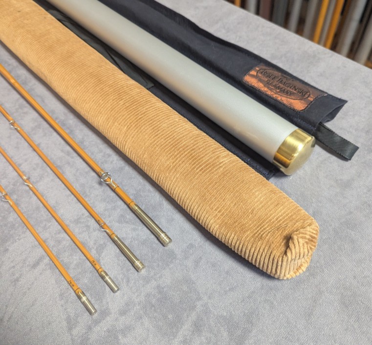 band and butt cap with burled Walnut wooden reel seat. Rod comes packed in original black cloth rod bag and