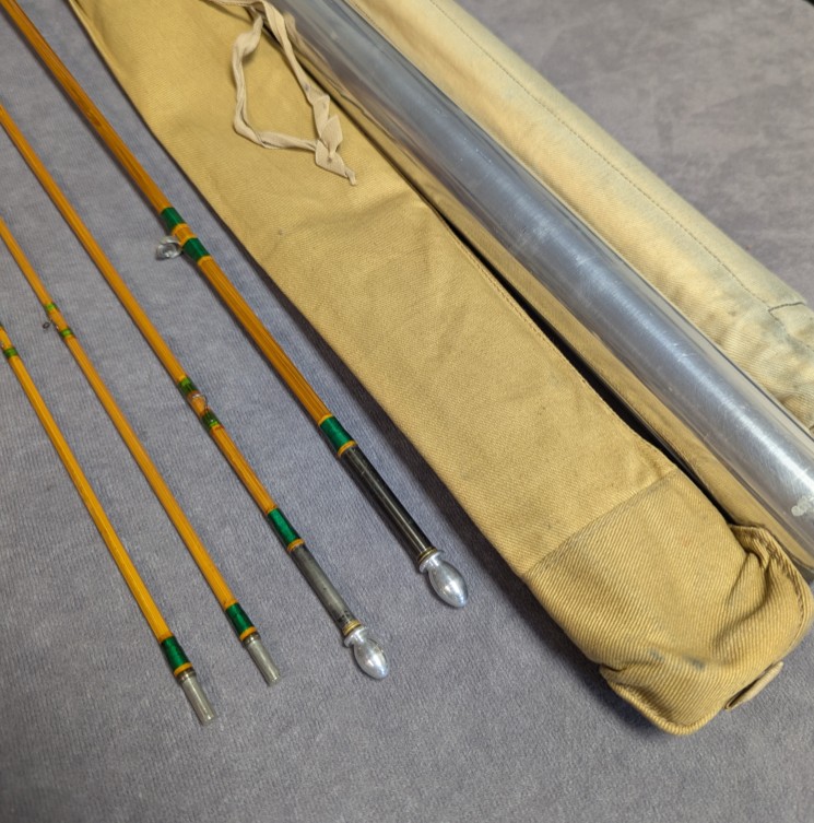 Medium fast dry fly action. Serial #H46335C. 50's rod. Blued nickel silver rod ferrules