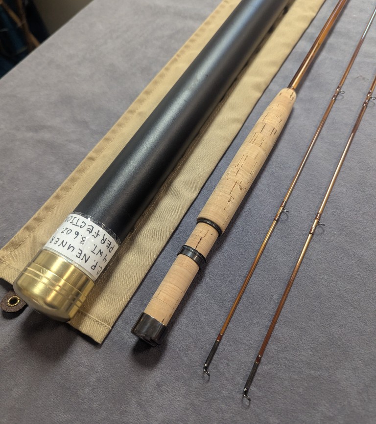 and stored in black aluminum brass capped rod tube. Rod is in excellent condition. $995.