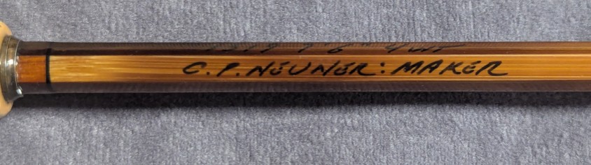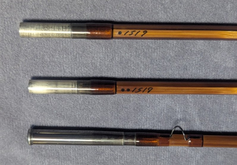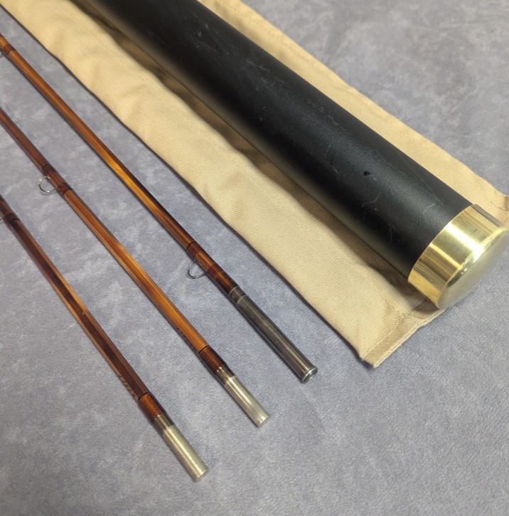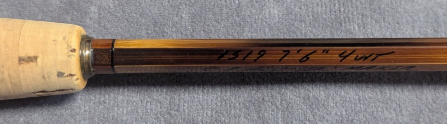 Fast dry fly action. Serial #1519. Nicely dark flamed bamboo. Blued nickel silver rod ferrules.