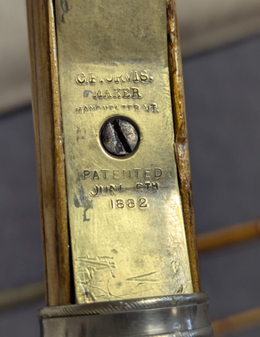 Spring Seat stamped, "C.F. Orvis, Maker, Manchester VT, Pat. June 1882.
