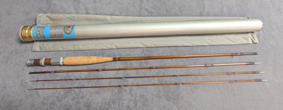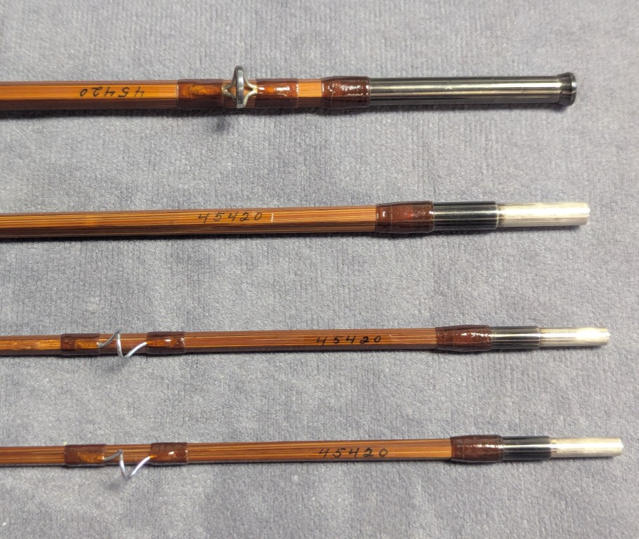 Serial #45420. Built in 1966. 3.3 oz. Very nice dark impregnated bamboo. Blued nickel silver rod ferrules.