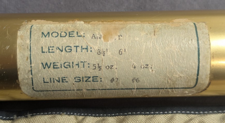 and stored in original aluminum labeled factory rod tube. Rod is in