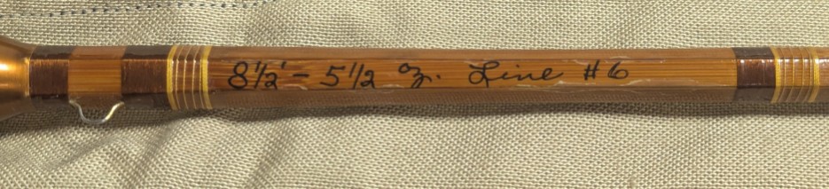 1st rod is 8 1/2' 3/2 6 WT, Fast action. Dark impregnated bamboo, bright nickel silver rod ferrules. Wrapped in dark brown,