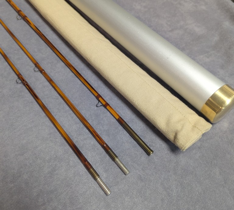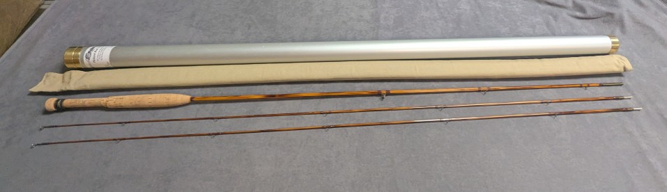 in khaki cloth rod bag and stored in aluminum labeled brass capped rod tube.