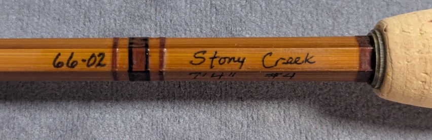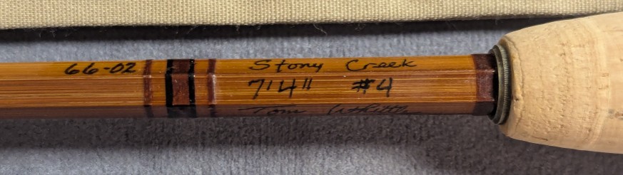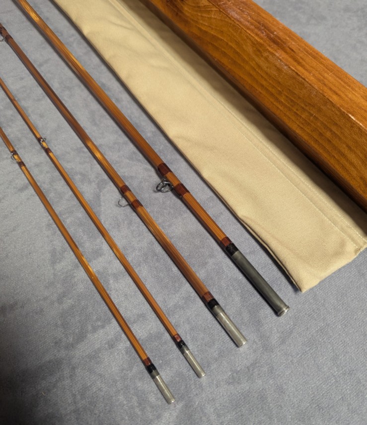 Fast dry fly action. Dark tempered bamboo with blued nickel silver rod ferrules. Carbide stripper guide.