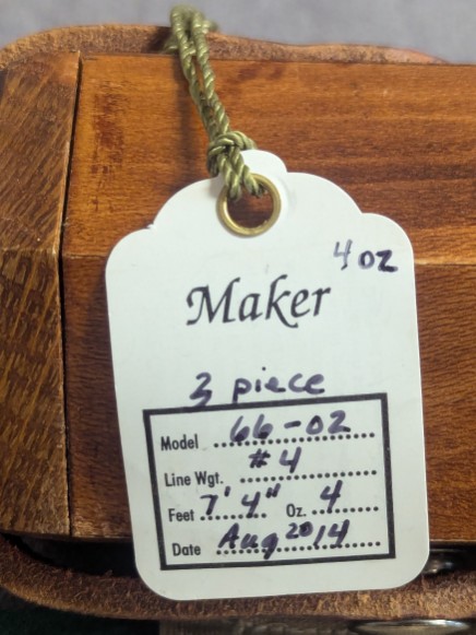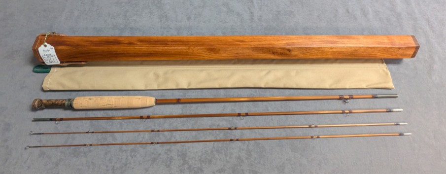 wooden reel seat. Rod comes packed in original khaki cloth rod bag and stored in original wooden hexagon