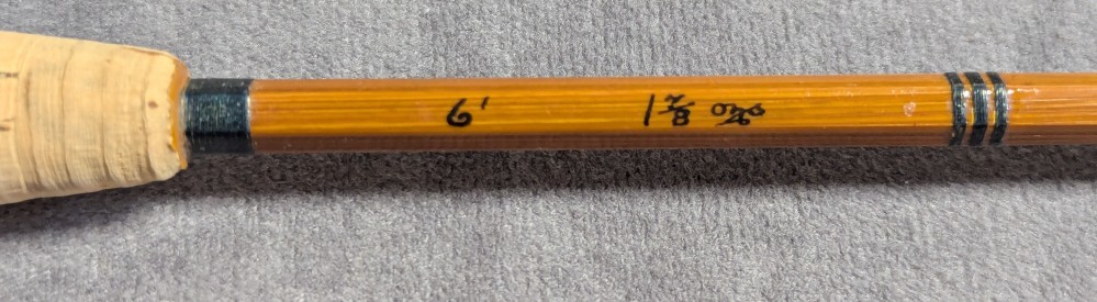 Fast dry fly action. 1 7/8 oz. Blued nickel silver rod ferrules with factory ferrule plug. Reverse English