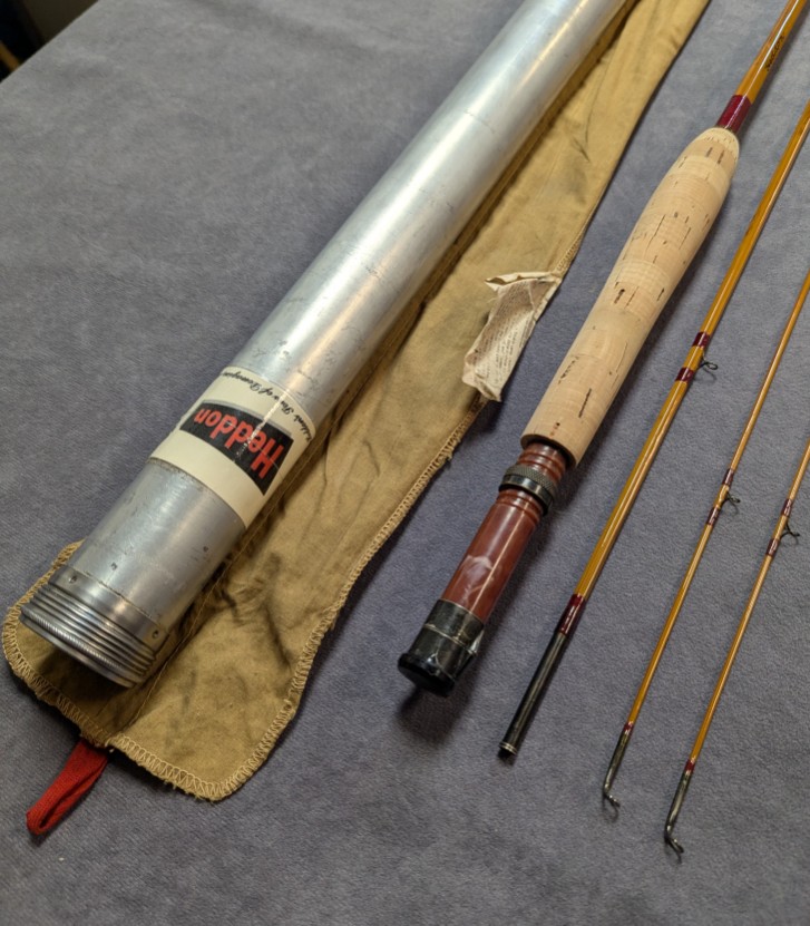 and stored in original Heddon aluminum rod tube. Rod was refinished