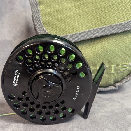 Reel comes packed in factory marked Orvis reel pouch.