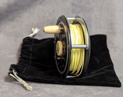 in black drawstring reel bag. Reel and case are in excellent condition. $75.