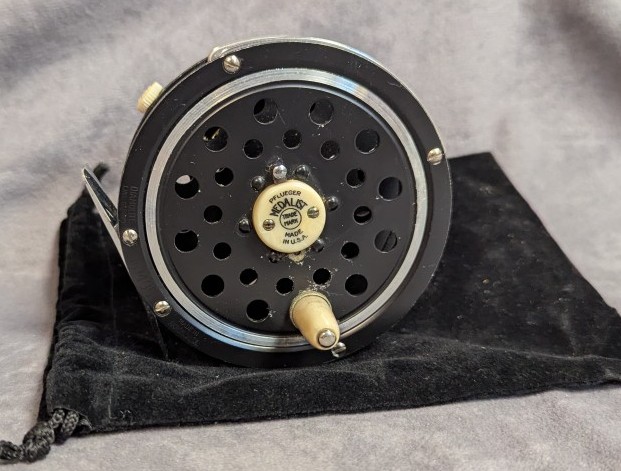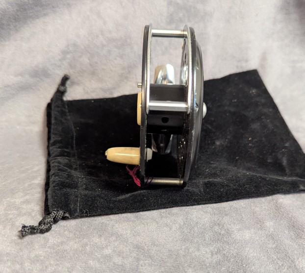 in black drawstring reel bag. Reel is in very good condition. $50.