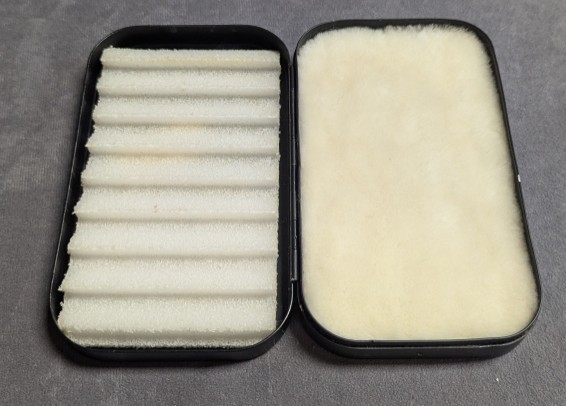 Measures 6" x 3 1/2" x 1". Good all purpose box. Rippled foam on one side,