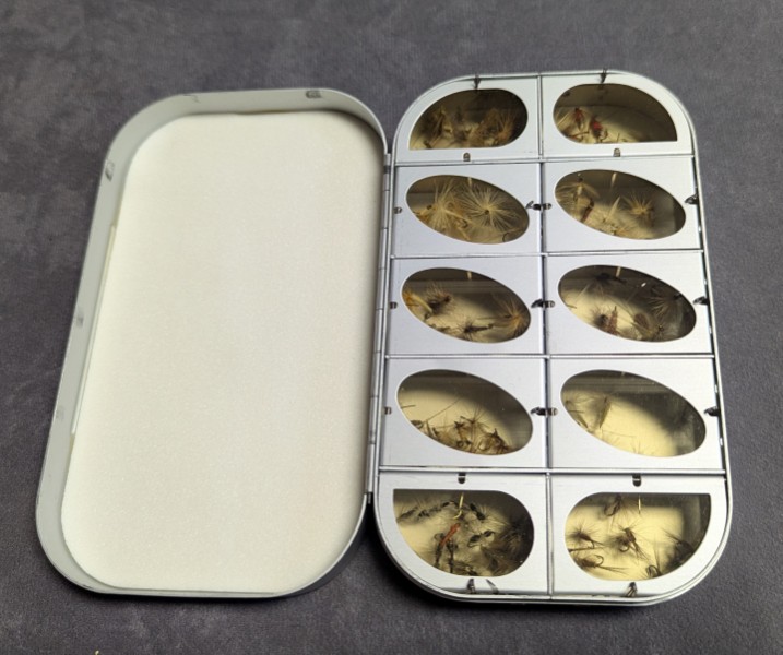 Comes with approx. 6 dozen dry flies in excellent condition. $50.