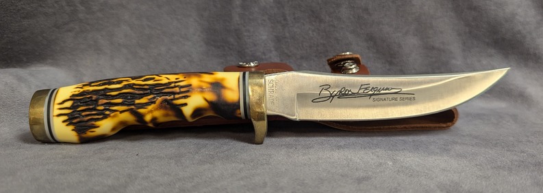 Bryan Ferguson Signature Series. Knife comes stored in leather sheath and comes with sharpening stone.