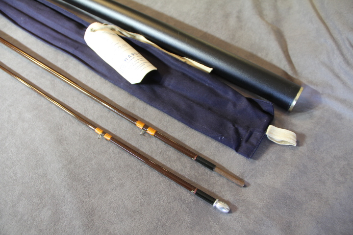 and rubber butt cap. Rod comes stored in original blue factory labeled cloth rod bag with hang tag.