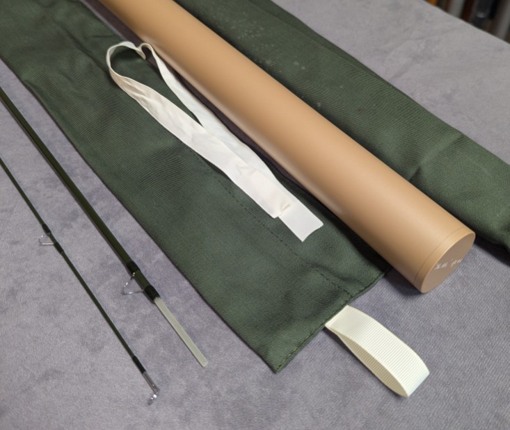 with aluminum slide band and butt cap. Rod comes stored in green labeled cloth rod bag