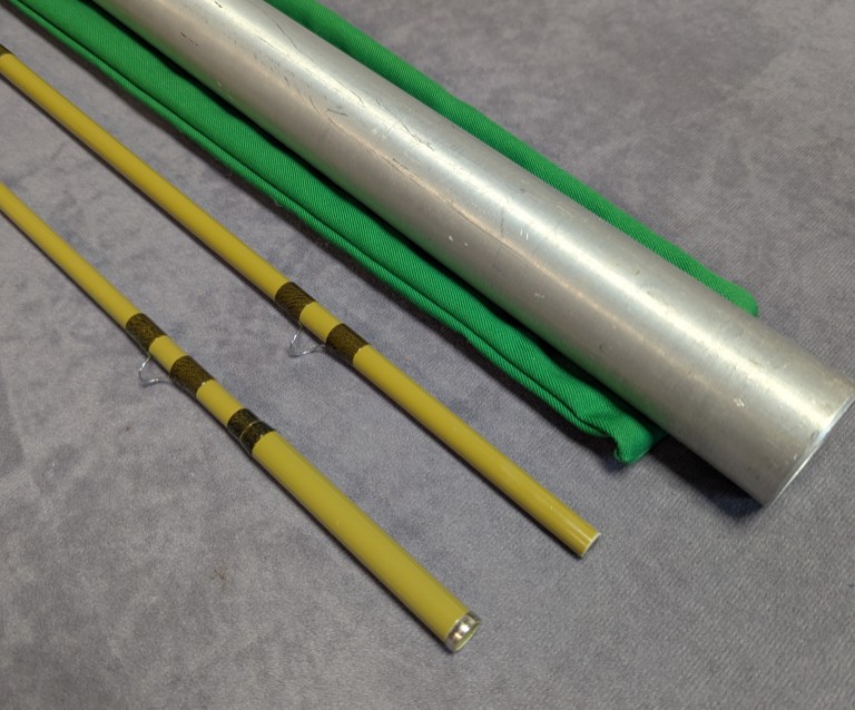 Rod comes packed in green cloth rod bag and stored in aluminum labeled factory rod tube.