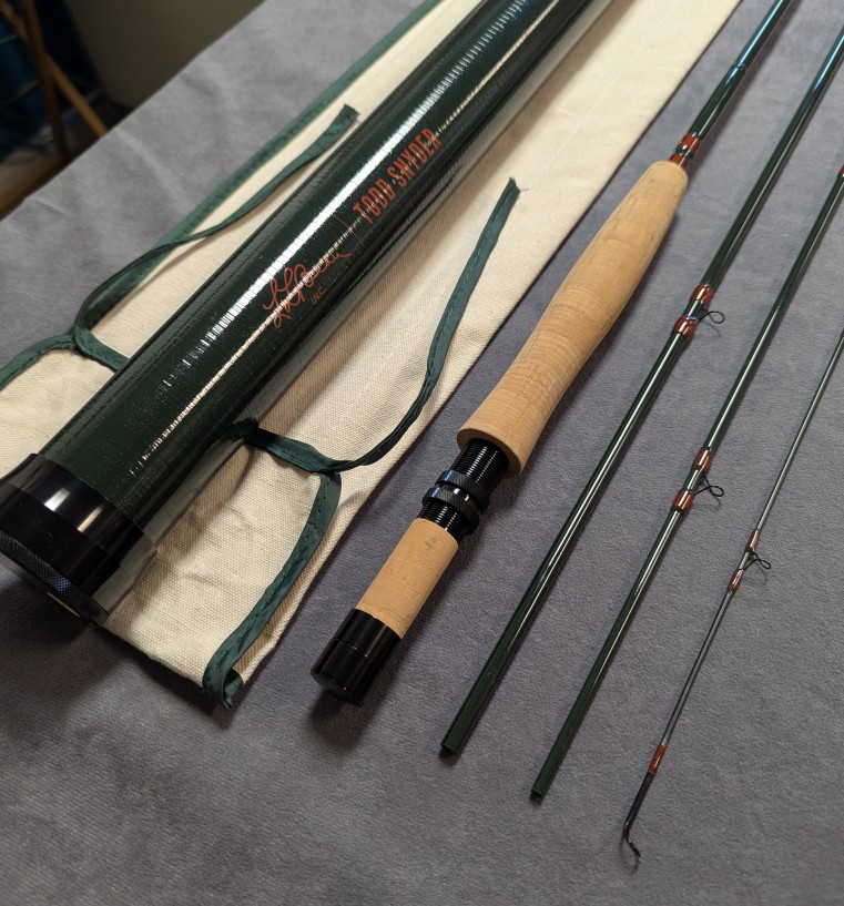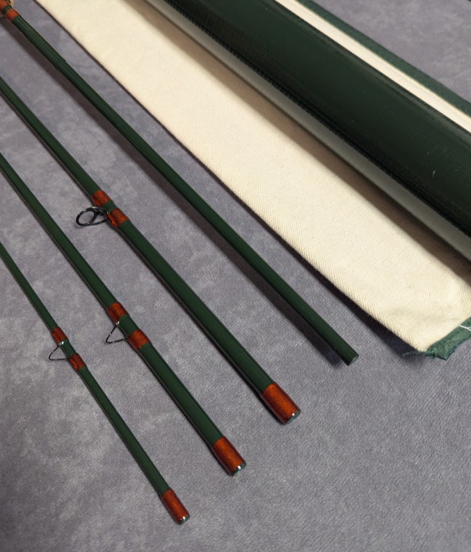 with cork reel seat spacer. Rod comes packed in cream cloth rod bag and stored in