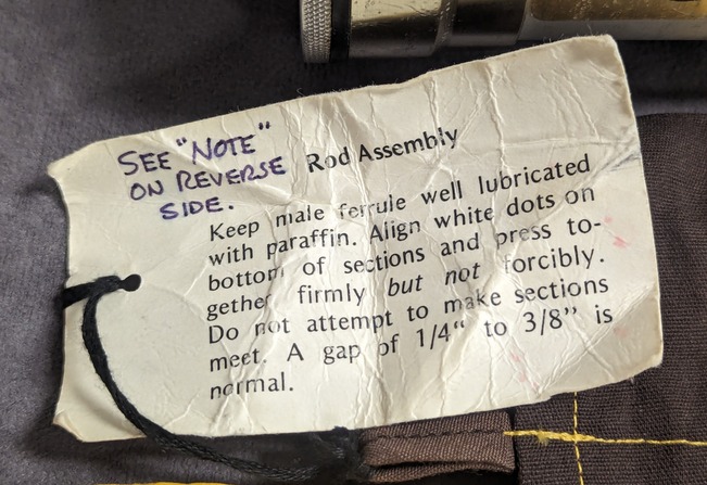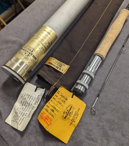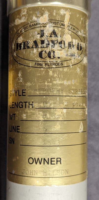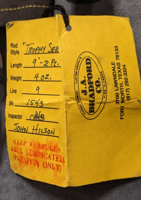 rod bag with hang tags and stored in aluminum labeled factory rod tube.