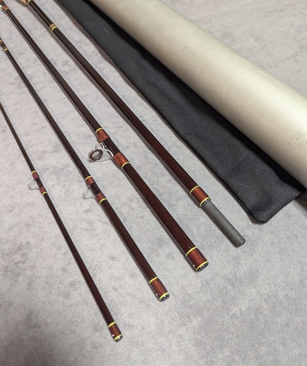 4 1/8 oz. Fast dry fly action. Spigot type rod ferrules. Wrapped in dark brown threads,