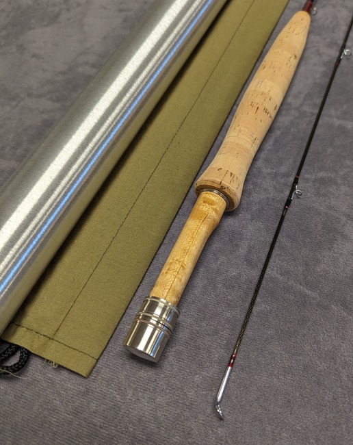 Maple wooden reel seat. Rod comes packed away in green cloth