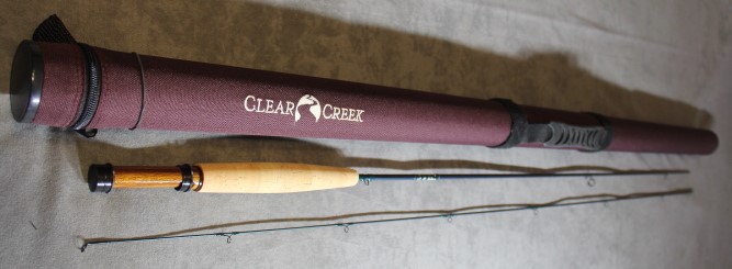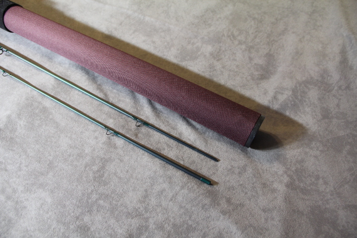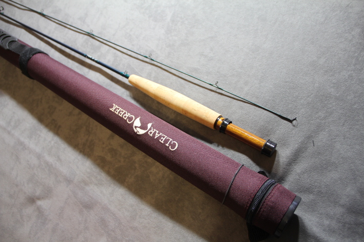 slideband and butt cap with Walnut wooden reelseat. Rod is in new unused conditiion. Stored in Burgandy Clear Creek rod tube. $195.