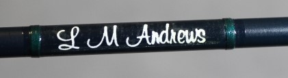 1.7 oz. Medium action. Wrapped in dark green threads, ceramic stripper guide. Cigar cork grip with black anodized aluminum