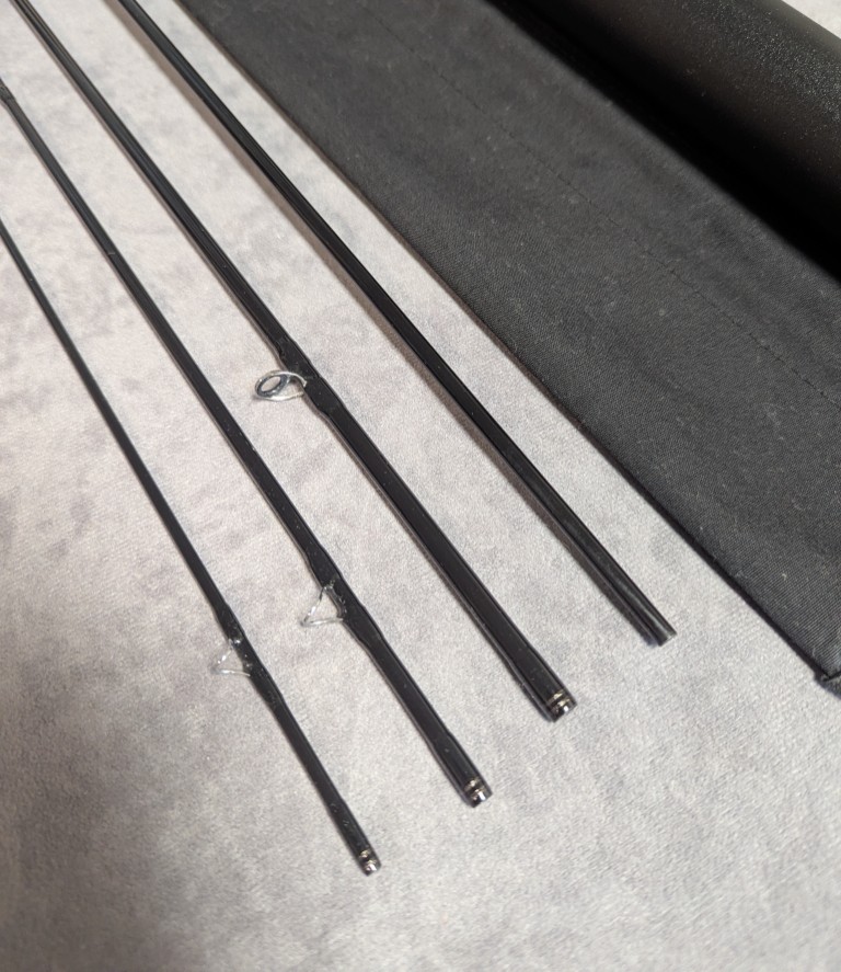 2 1/8 oz. Medium fast dry fly action. Wrapped in black threads, ceramic stripper guide.