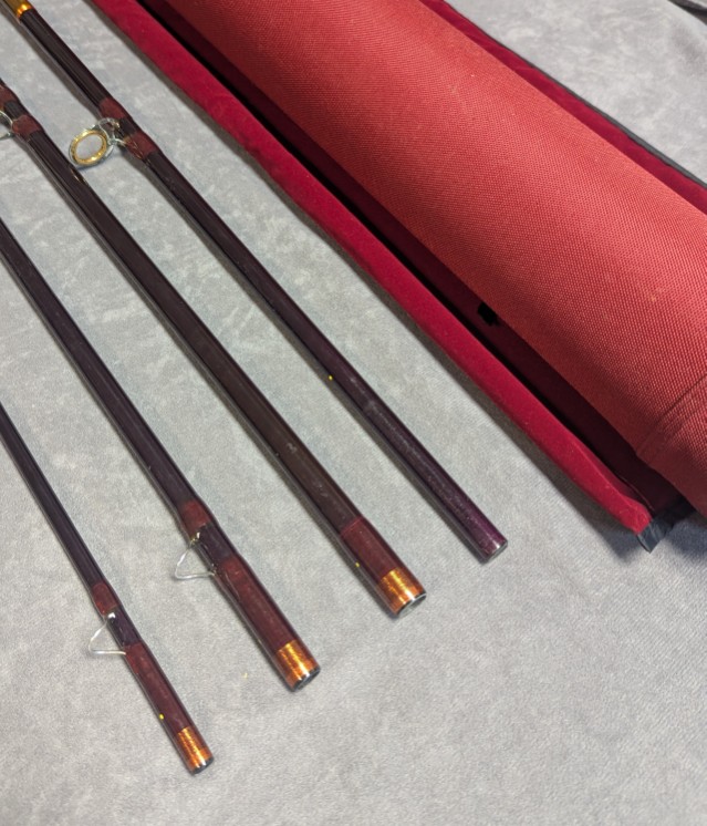 Rod comes packed in labeled burgundy cloth original rod bag and stored in original factory burgundy labeled