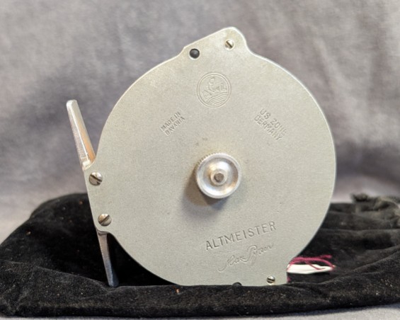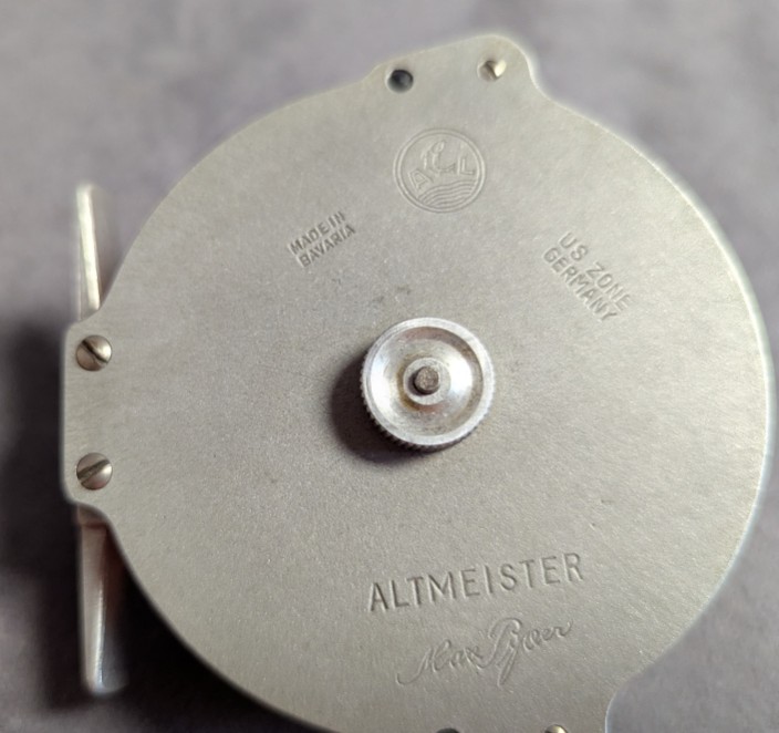 Spool width 7/8". Made in Bavaria, US Zone Germany, Pillar to Pillar . Made of aluminum