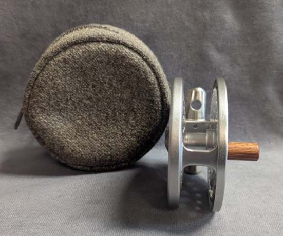 Silver anodized reel finish. Wooden handle knob, quick release spool lever.