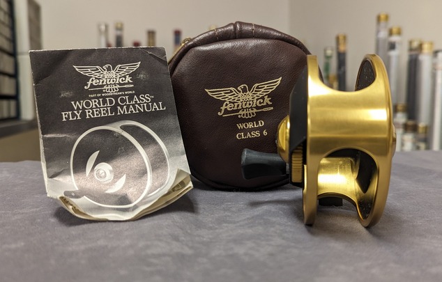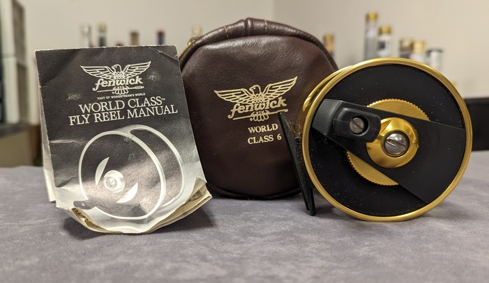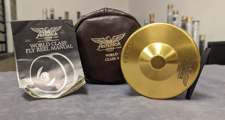 brown, factory, zippered leather reel case. Reel is in new, unused condition. $250.