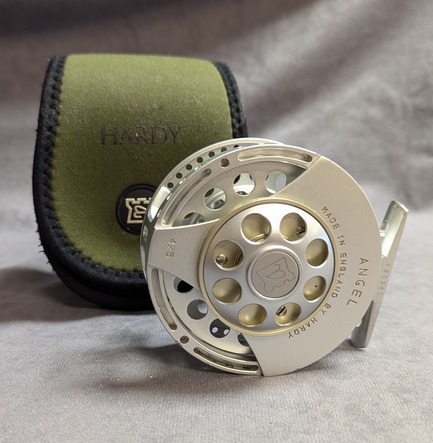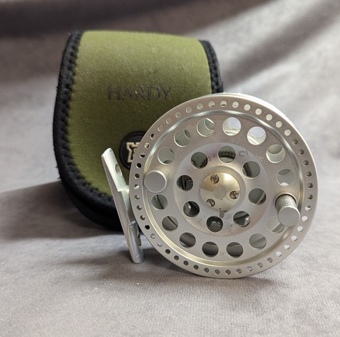 Reel is packed in Hardy marked green neoprene reel pouch.