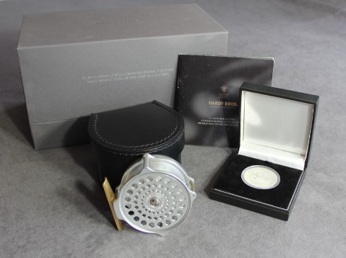 RHW, Takes 4-6 wt. lines. Comes with special Anniversary medallion. Reel comes stored in black hard leather horseshoe reel case and