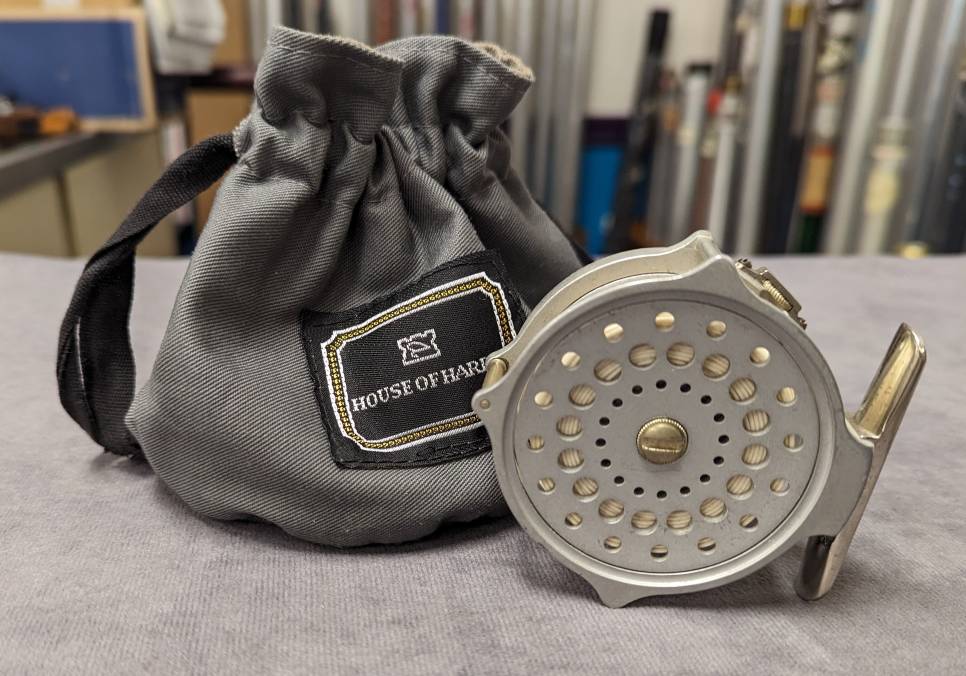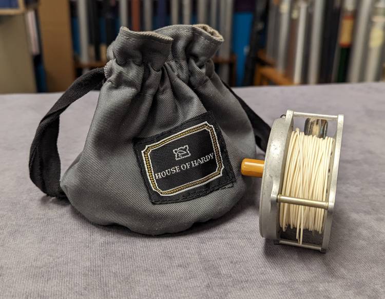 Stored in Hardy marked drawstring reel bag. Reel is in