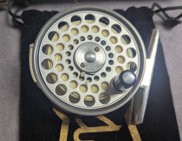 Pre-set silent check drag system. 2 screw nickel silver line guide. Reel comes with new Abercrombie & Fitch fly line
