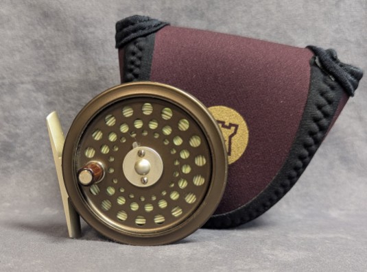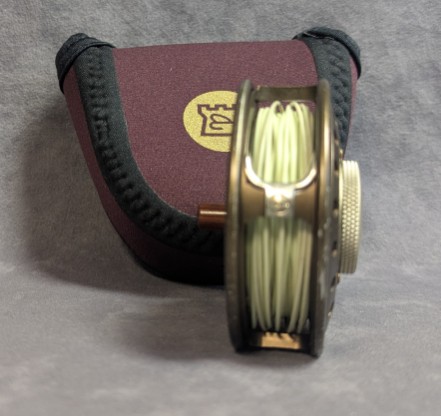 Reel comes packed in burgundy neoprene reel pouch.