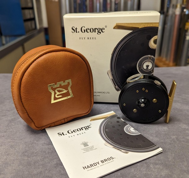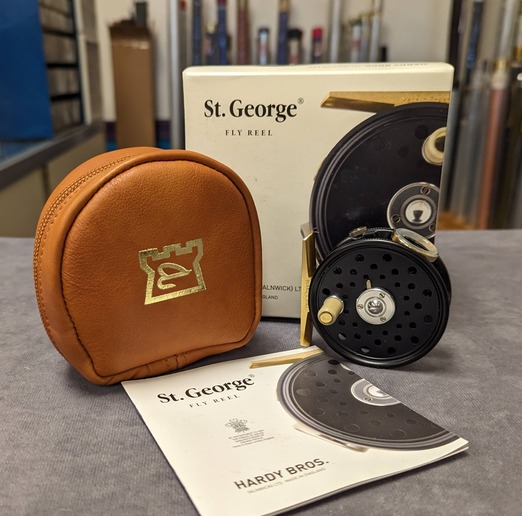 regulator button. Reel comes stored in Hardy leather reel case