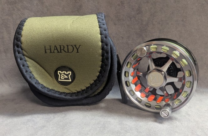 Black and silver anodized reel finish. Comes stored in green labeled factory neoprene reel pouch.