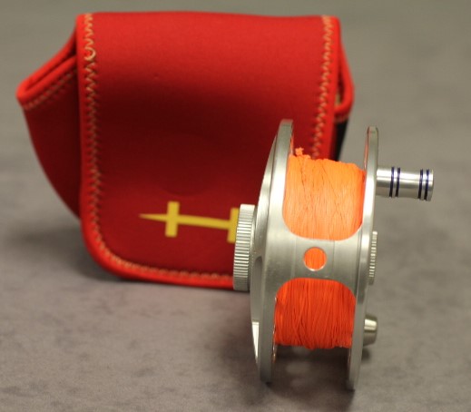 rear adjuster button. Silver anodized reel finish. Comes stored in red