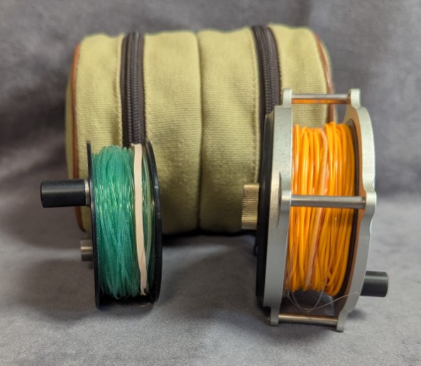 Reel and spool come packed in green dual zippered reel case.