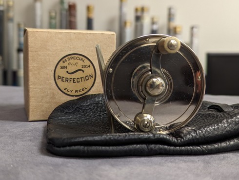 1" wide spool. Takes 3-5 wt. lines. Serial #011R, Built in 2014. Made of nickel silver.