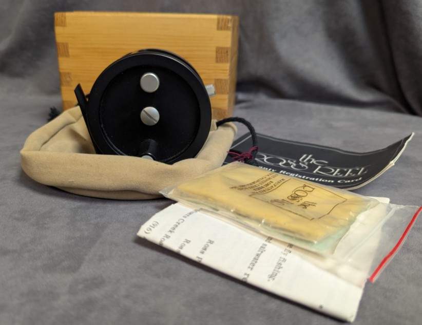 1 1/16" wide spool. Takes 7-8 wt. lines. Black anodized reel finish. Serial #S1-0019.