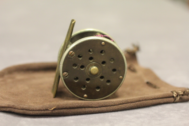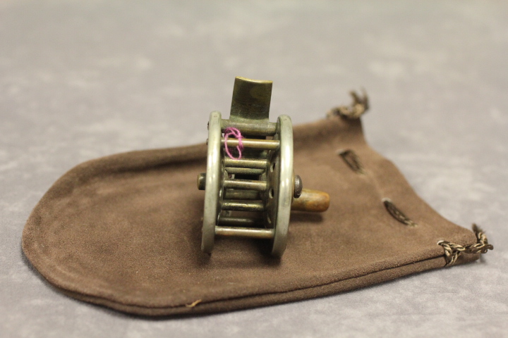 Smooth full length brass foot. Reel comes packed in leather drawstring reel bag.