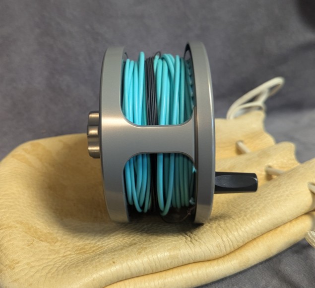 1 1/2" wide spool. Takes 10-12 wt. lines. Disc type drag system