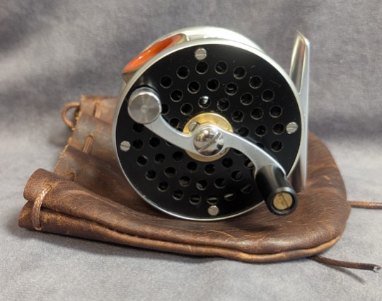 Reel comes packed in brown leather drawstring