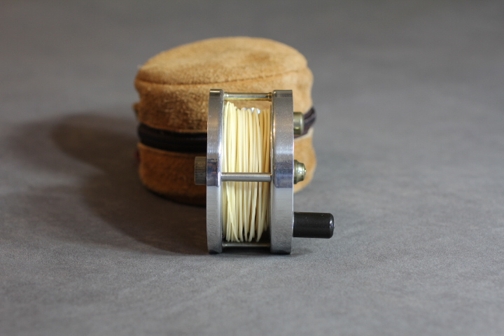 Reel comes stored in brown suede zippered reel case and is in excellent condition. $1695. REDUCED TO $1195.