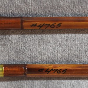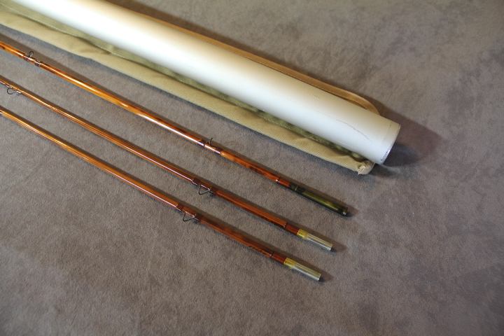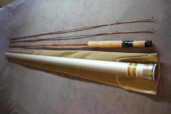Fast dry fly action. 4.55 oz. Serial #4765. Dark flamed tempered cane with blued